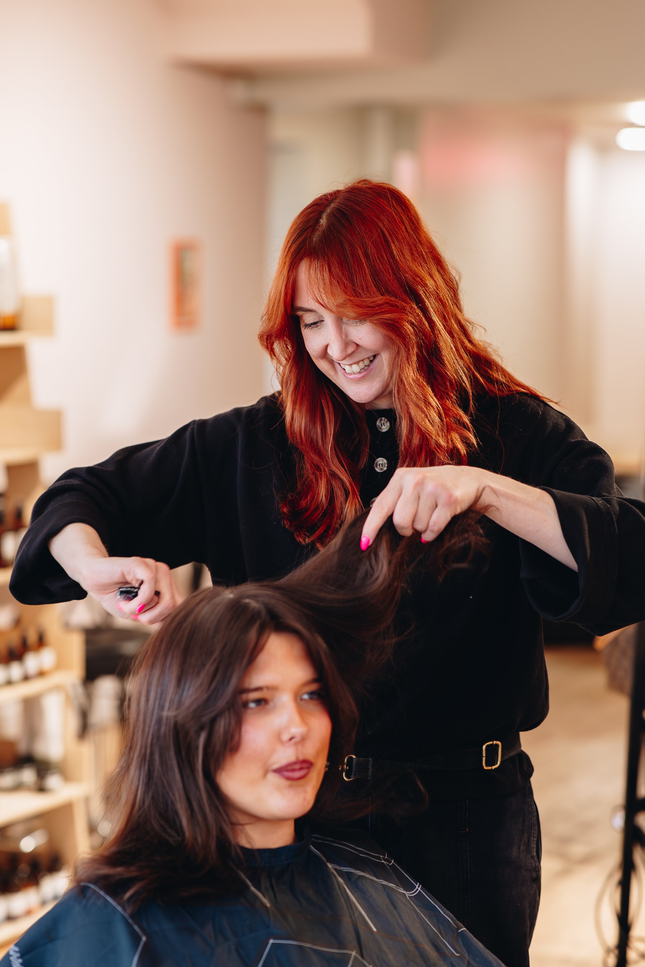 Kellie personally trains and mentors her team to the highest standard and also rents chairs to experienced stylists she knows and trusts. This approach creates a supportive, flexible, and friendly environment, allowing stylists to work around their lifestyles while ensuring every client receives consistently high-quality service.